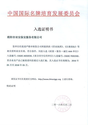中國(guó)國(guó)際****培育發(fā)展委員會(huì)入選證明書